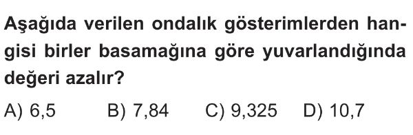 6. Sınıf Ondalık Gösterimlerde Yuvarlama ve Sıralama Test 2