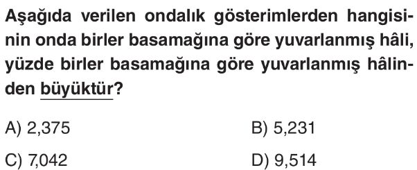 6. Sınıf Ondalık Gösterimlerde Yuvarlama ve Sıralama Test 2