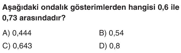 6. Sınıf Ondalık Gösterimlerde Yuvarlama ve Sıralama Test 2