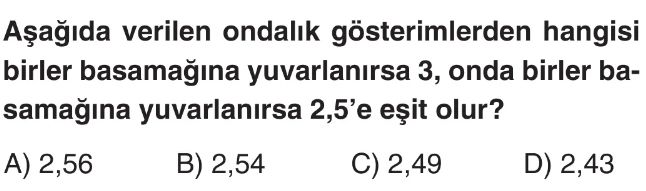 6. Sınıf Ondalık Gösterimlerde Yuvarlama ve Sıralama Test 3