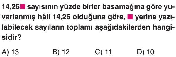 6. Sınıf Ondalık Gösterimlerde Yuvarlama ve Sıralama Test 3