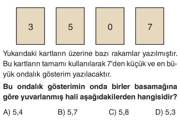 6. Sınıf Ondalık Gösterimlerde Yuvarlama ve Sıralama Test 3