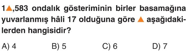 6. Sınıf Ondalık Gösterimlerde Yuvarlama ve Sıralama Test 3