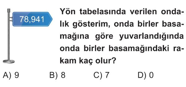 6. Sınıf Ondalık Gösterimlerde Yuvarlama ve Sıralama Test 3