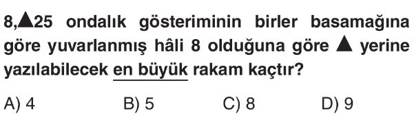 6. Sınıf Ondalık Gösterimlerde Yuvarlama ve Sıralama Test 4