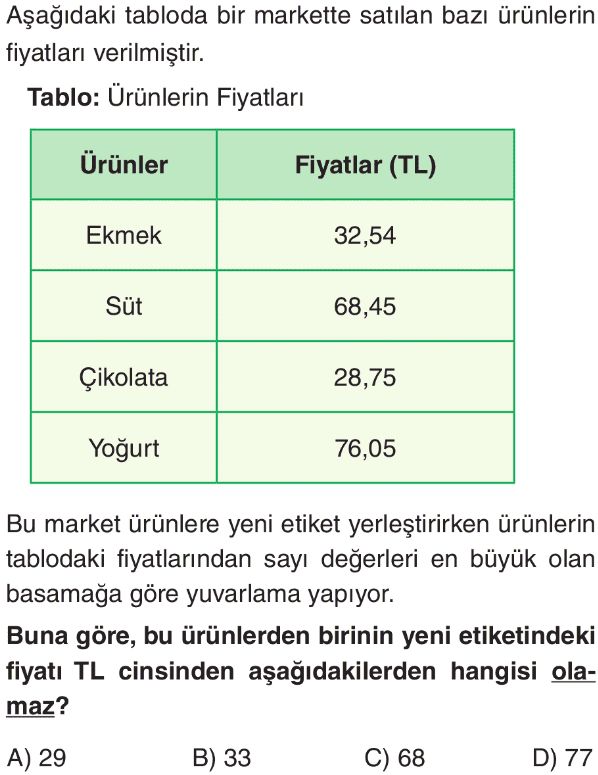 6. Sınıf Ondalık Gösterimlerde Yuvarlama ve Sıralama Test 4