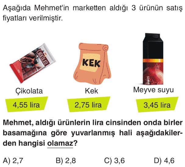 6. Sınıf Ondalık Gösterimlerde Yuvarlama ve Sıralama Test 5