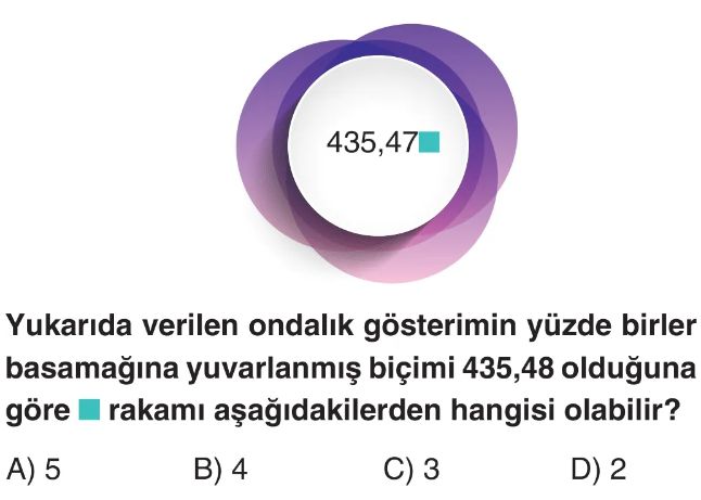 6. Sınıf Ondalık Gösterimlerde Yuvarlama ve Sıralama Test 5