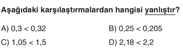 6. Sınıf Ondalık Gösterimlerde Yuvarlama ve Sıralama Test 6