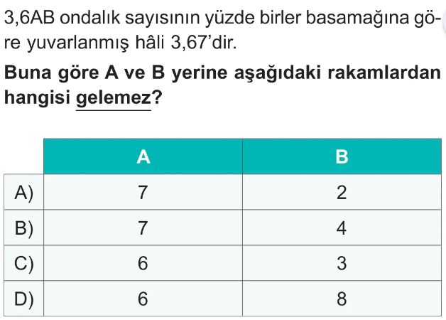 6. Sınıf Ondalık Gösterimlerde Yuvarlama ve Sıralama Test 6