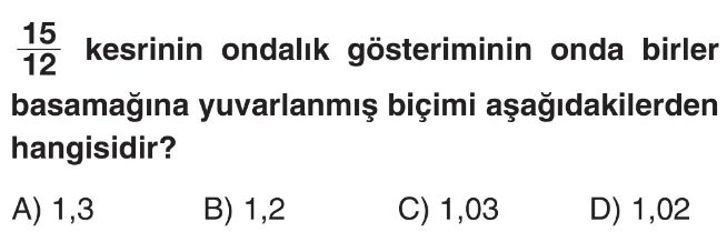 6. Sınıf Ondalık Gösterimlerde Yuvarlama ve Sıralama Test 7