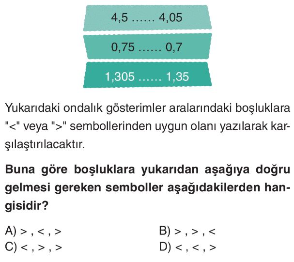 6. Sınıf Ondalık Gösterimlerde Yuvarlama ve Sıralama Test 9