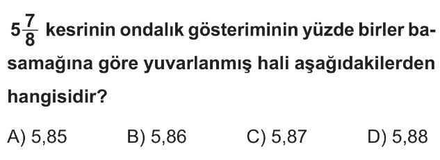 6. Sınıf Ondalık Gösterimlerde Yuvarlama ve Sıralama Test 9