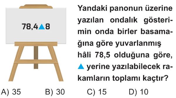 6. Sınıf Ondalık Gösterimlerde Yuvarlama ve Sıralama Test 9