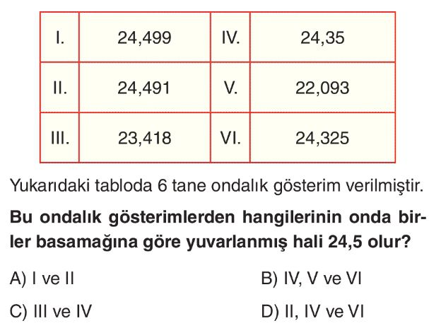 6. Sınıf Ondalık Gösterimlerde Yuvarlama ve Sıralama Test 9