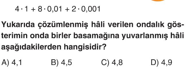 6. Sınıf Ondalık Gösterimlerde Yuvarlama ve Sıralama Test 10
