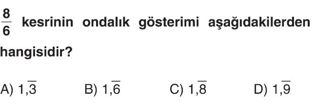 6. Sınıf Kesir ve Bölme İşlemi Arasındaki İlişki - Devirli Ondalık Gösterim Test 1