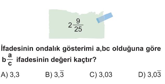 6. Sınıf Kesir ve Bölme İşlemi Arasındaki İlişki - Devirli Ondalık Gösterim Test 1