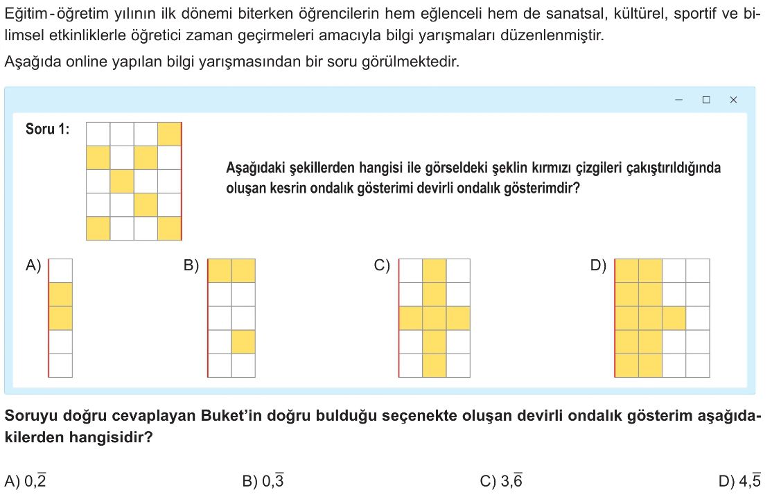 6. Sınıf Kesir ve Bölme İşlemi Arasındaki İlişki - Devirli Ondalık Gösterim Test 1