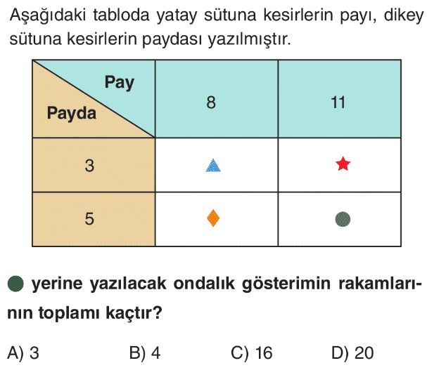 6. Sınıf Kesir ve Bölme İşlemi Arasındaki İlişki - Devirli Ondalık Gösterim Test 1