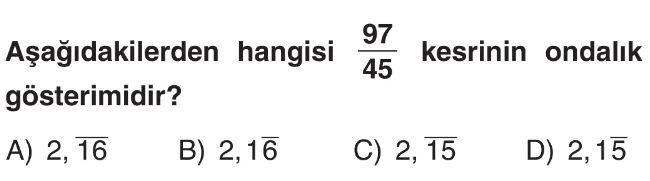 6. Sınıf Kesir ve Bölme İşlemi Arasındaki İlişki - Devirli Ondalık Gösterim Test 2