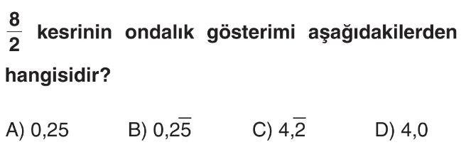 6. Sınıf Kesir ve Bölme İşlemi Arasındaki İlişki - Devirli Ondalık Gösterim Test 2