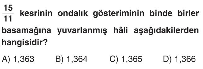 6. Sınıf Kesir ve Bölme İşlemi Arasındaki İlişki - Devirli Ondalık Gösterim Test 3