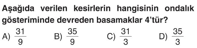 6. Sınıf Kesir ve Bölme İşlemi Arasındaki İlişki - Devirli Ondalık Gösterim Test 3