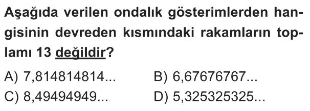 6. Sınıf Kesir ve Bölme İşlemi Arasındaki İlişki - Devirli Ondalık Gösterim Test 3