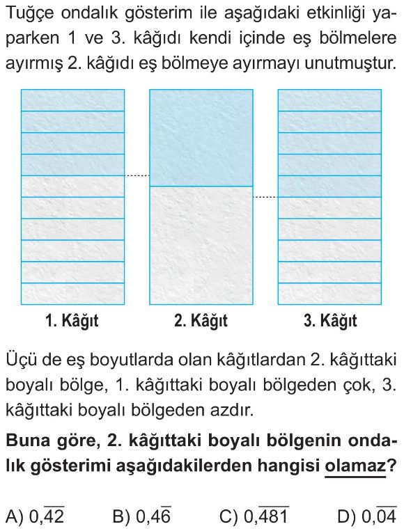 6. Sınıf Kesir ve Bölme İşlemi Arasındaki İlişki - Devirli Ondalık Gösterim Test 3
