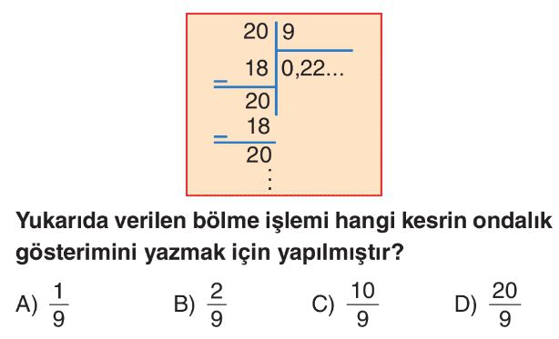 6. Sınıf Kesir ve Bölme İşlemi Arasındaki İlişki - Devirli Ondalık Gösterim Test 3
