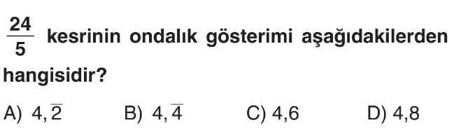 6. Sınıf Kesir ve Bölme İşlemi Arasındaki İlişki - Devirli Ondalık Gösterim Test 4