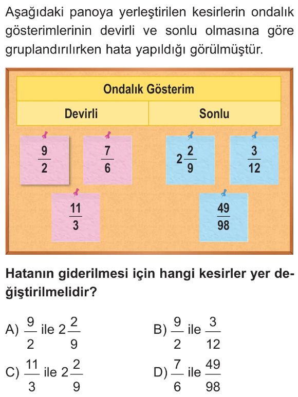 6. Sınıf Kesir ve Bölme İşlemi Arasındaki İlişki - Devirli Ondalık Gösterim Test 5