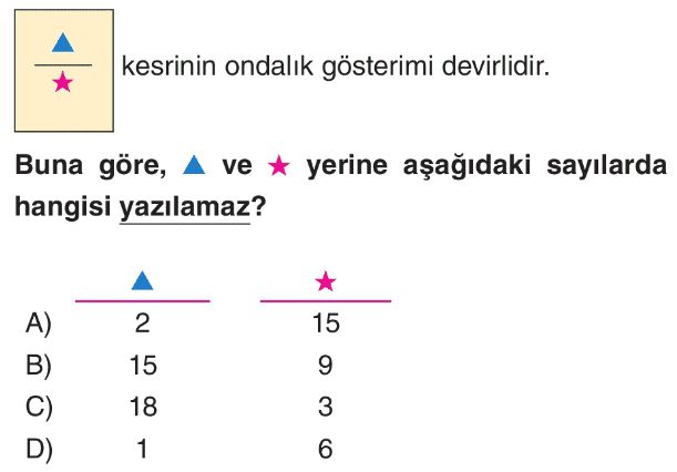 6. Sınıf Kesir ve Bölme İşlemi Arasındaki İlişki - Devirli Ondalık Gösterim Test 5
