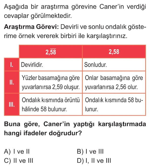 6. Sınıf Kesir ve Bölme İşlemi Arasındaki İlişki - Devirli Ondalık Gösterim Test 5