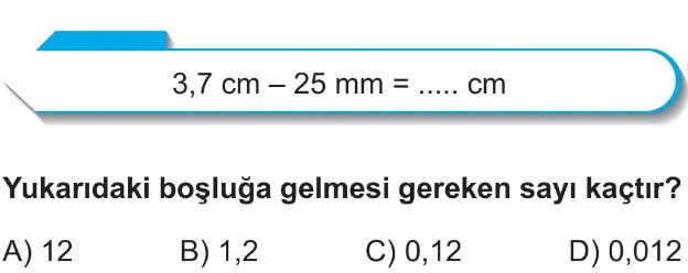 6. Sınıf Uzunluk Ölçme Birimleri Test 1