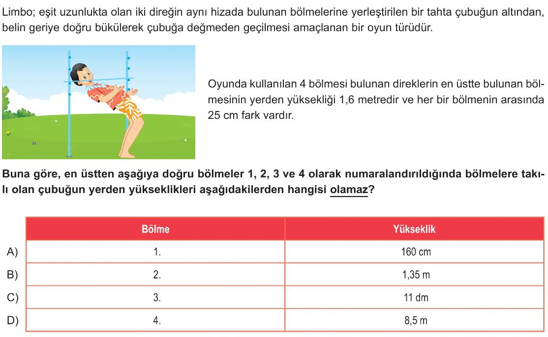 6. Sınıf Uzunluk Ölçme Birimleri Test 1