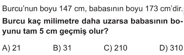 6. Sınıf Uzunluk Ölçme Birimleri Test 2