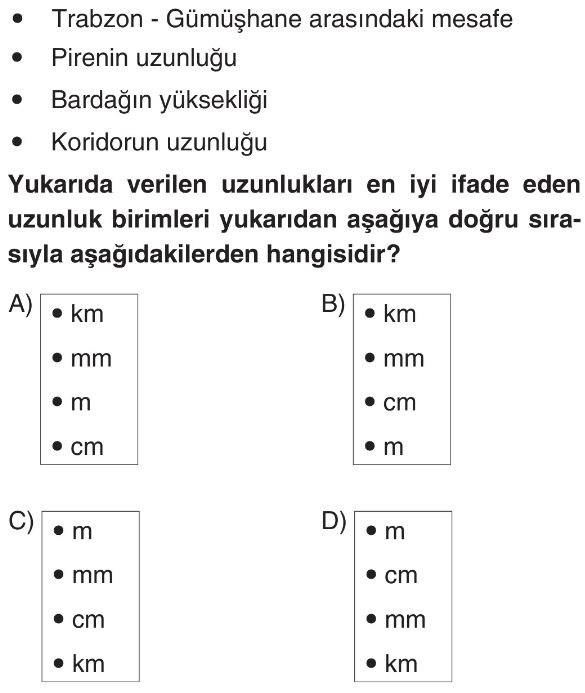 6. Sınıf Uzunluk Ölçme Birimleri Test 2