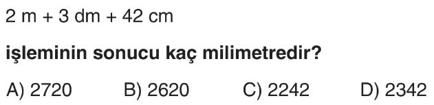 6. Sınıf Uzunluk Ölçme Birimleri Test 2