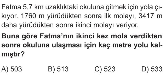 6. Sınıf Uzunluk Ölçme Birimleri Test 3