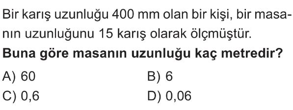 6. Sınıf Uzunluk Ölçme Birimleri Test 4