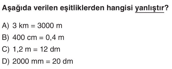 6. Sınıf Uzunluk Ölçme Birimleri Test 4