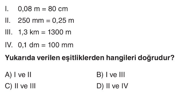 6. Sınıf Uzunluk Ölçme Birimleri Test 4