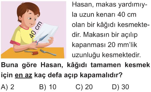 6. Sınıf Uzunluk Ölçme Birimleri Test 5