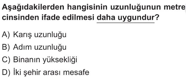 6. Sınıf Uzunluk Ölçme Birimleri Test 5