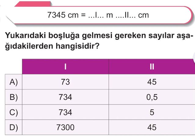 6. Sınıf Uzunluk Ölçme Birimleri Test 6