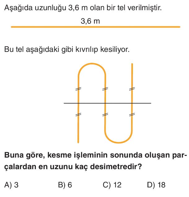 6. Sınıf Uzunluk Ölçme Birimleri Test 6