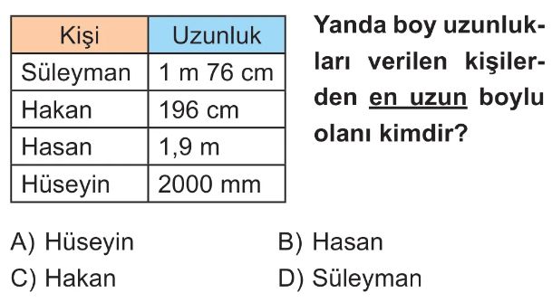 6. Sınıf Uzunluk Ölçme Birimleri Test 6