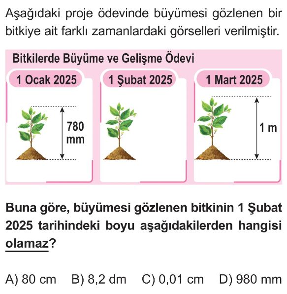 6. Sınıf Uzunluk Ölçme Birimleri Test 7